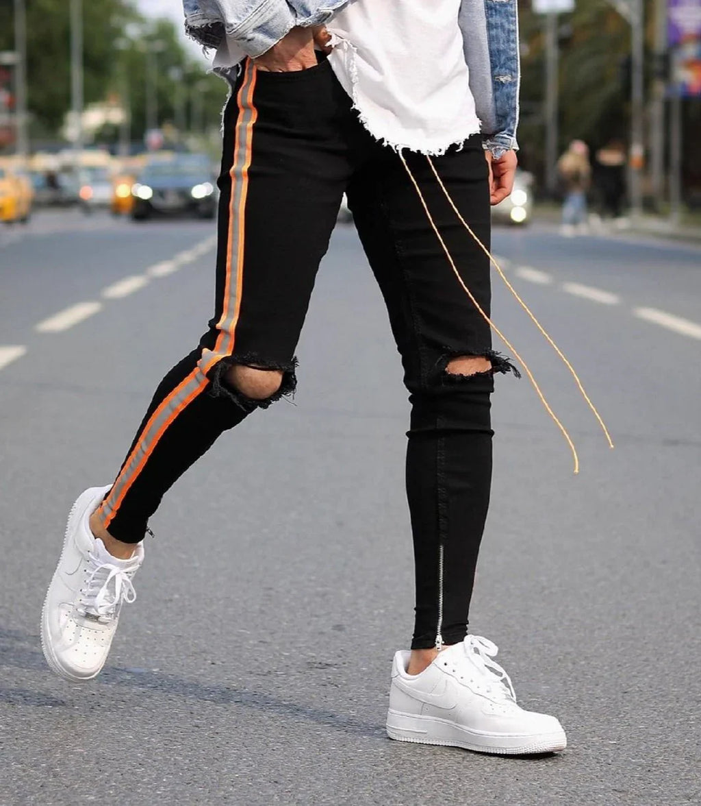 A OrangeLine™ chegou para incendiar o visual urbano com atitude e presença. Seu design único, com faixas laranja vibrantes e rasgos estratégicos, transforma qualquer look em uma declaração de estilo ousado.
