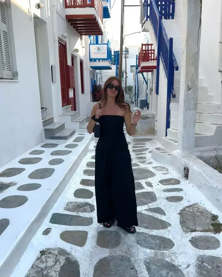 Com design sem alças, cintura ajustada e perna ampla, o Macacão Diva Bakana combina charme e praticidade, sem abrir mão do conforto.