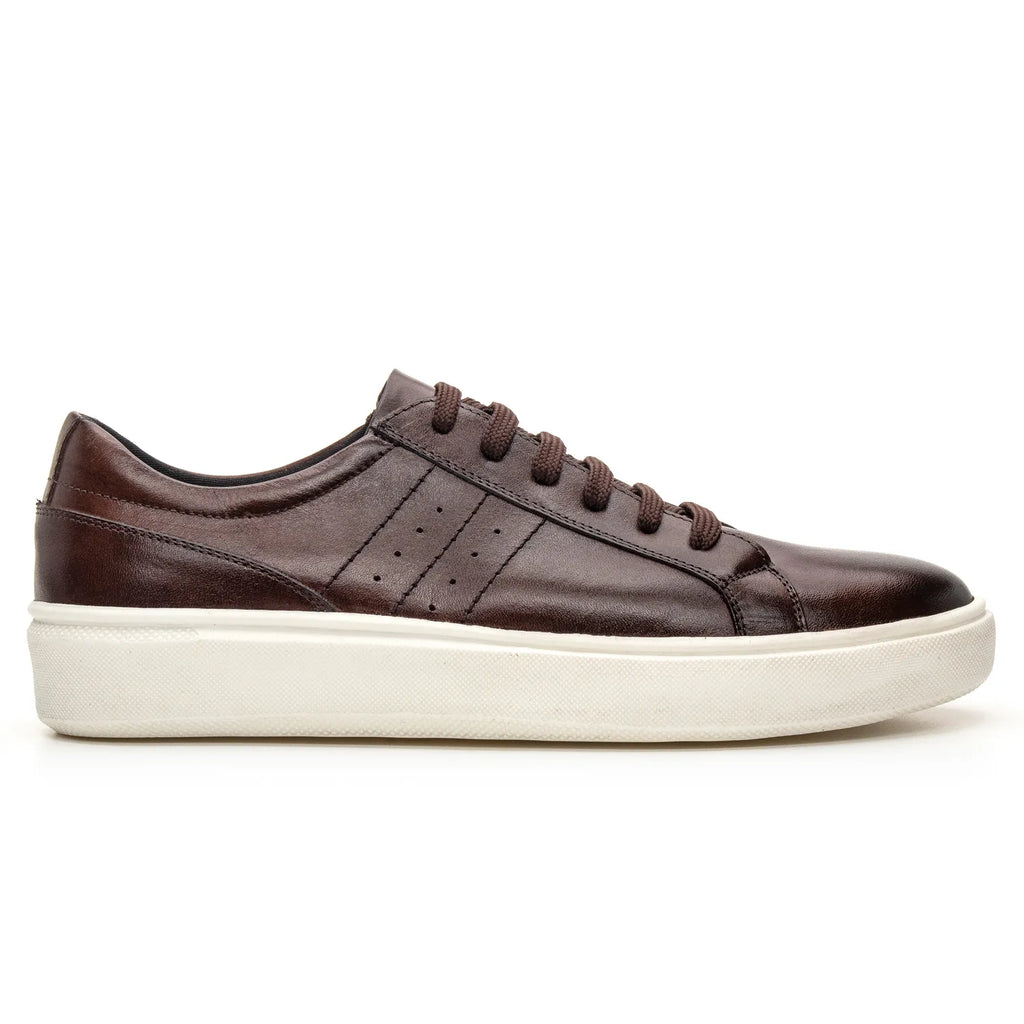O couro tabaco confere ao tênis um visual atemporal que combina facilmente com qualquer estilo. Seja em um look casual com jeans ou algo mais alinhado para o trabalho, o calçado tabaco em couro adapta-se a diferentes ocasiões e ambientes. Sua versatilidade permite que você o use tanto em situações informais quanto em eventos que exigem um toque mais elegante. Com este tênis, você nunca errará na escolha do seu outfit.