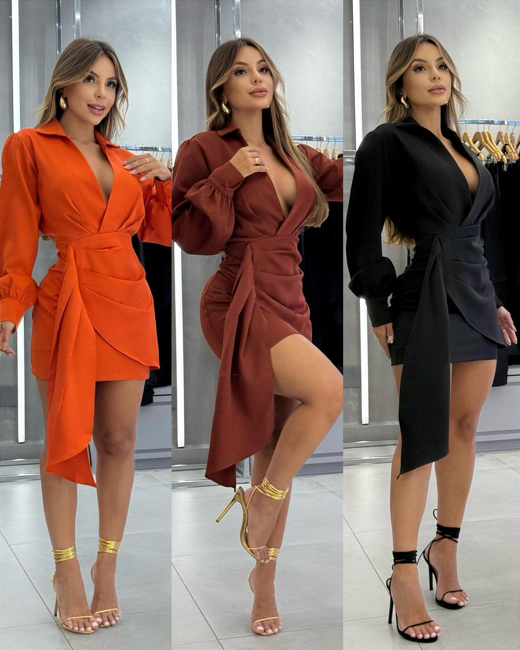✔️ Decote em V transpassado com gola: valoriza o colo com elegância sem excessos.